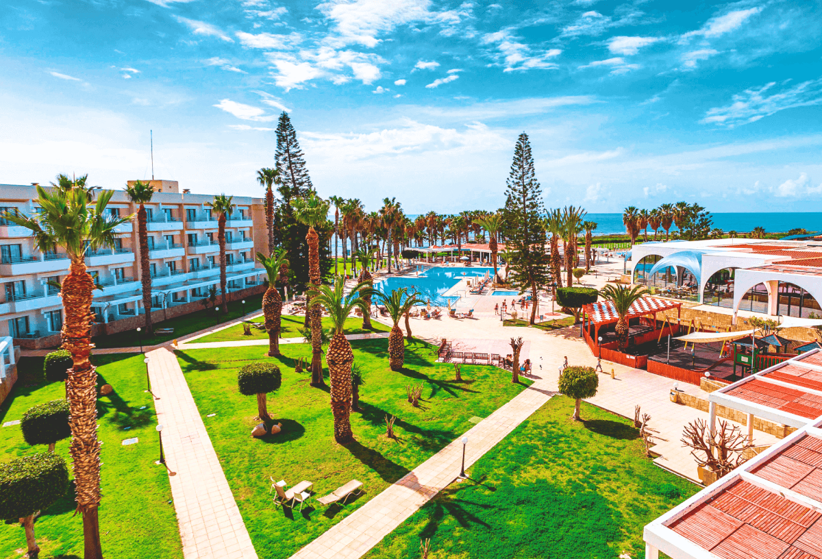 Louis Phaethon Beach is set in a quiet part of town, just outside of the main resort. There are three restaurants on-site, giving you plenty of choice for mealtimes. If you’re wanting to explore the local area, there are buses that run roughly every half an hour from outside of the hotel.