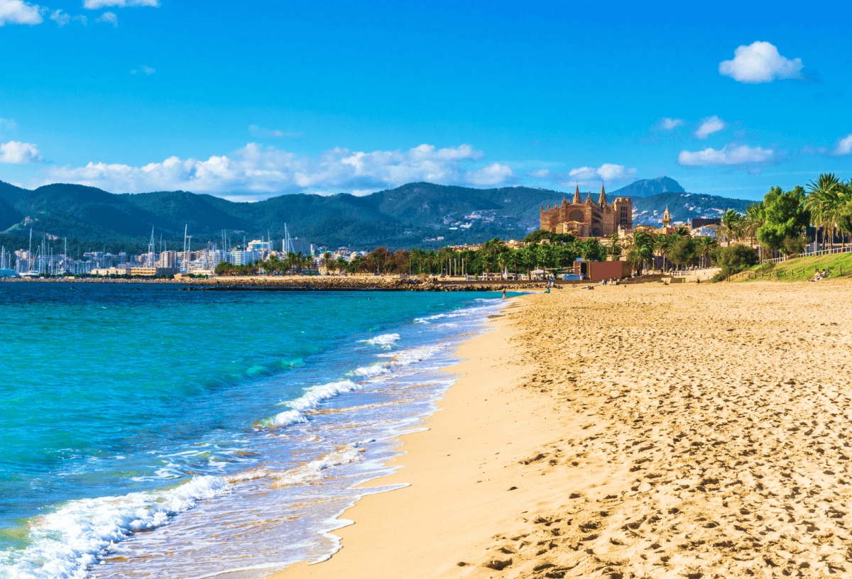 There’s gorgeous beaches located either side of Palma city centre, the first being within walking distance of the iconic cathedral! Ca’n Pere Antoni Beach is just a short walk away from Palma Old Town, you simply follow the promenade along the bay front – and boom, hello sun, sand, and sea!