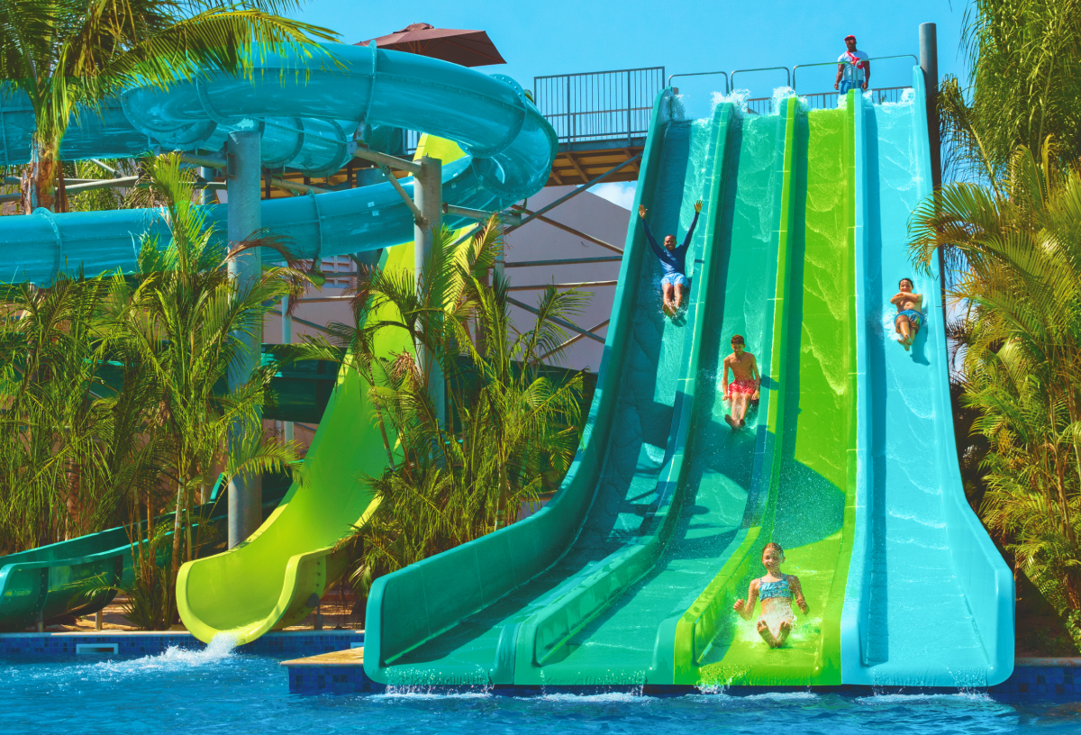 The main swimming spot features a swim-up bar, plus there’s an infinity pool pitched just steps from the sand. But, what’s a real hit with the kids is the onsite water park! It’s home to racer slides and tube chutes. Minimum height requirement to be met is 1.20m or 3.9 ft, meanwhile, to go on the slides, children must be 9-years-old at least. Children must use floats at all times.