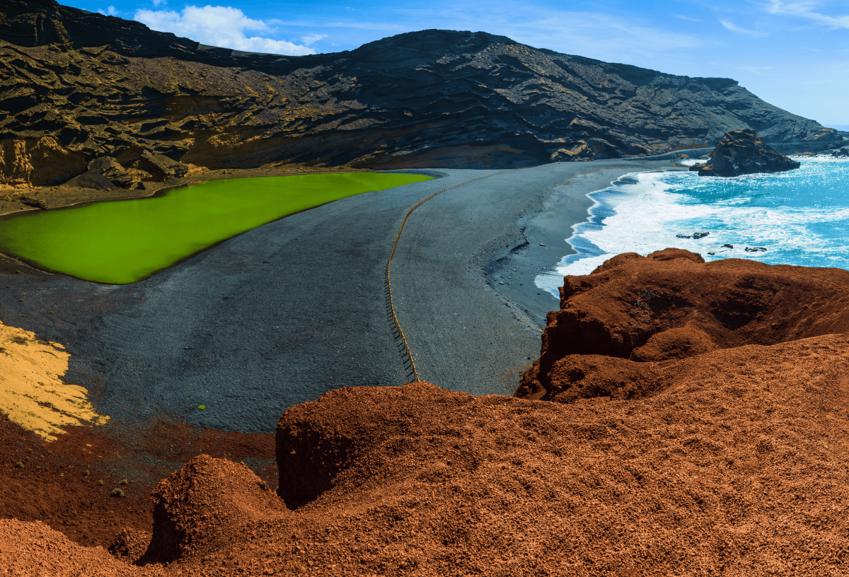 El Golfo and the Green Lagoon is truly a one of a kind place. Here you will find black sands and a green lake, formed in the crater of an old volcano. The green colour is caused by a type of algae that grows there.