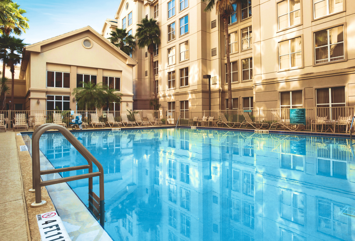 The smart, palm-fringed Homewood Suites by Hilton has an International Drive postcode, giving you easy access to Orlando’s must-sees. The hotel has a central spot on International Drive. It’s just 15 minutes from the theme parks. When you’re not in the parks, you can relax by the swimming pool.