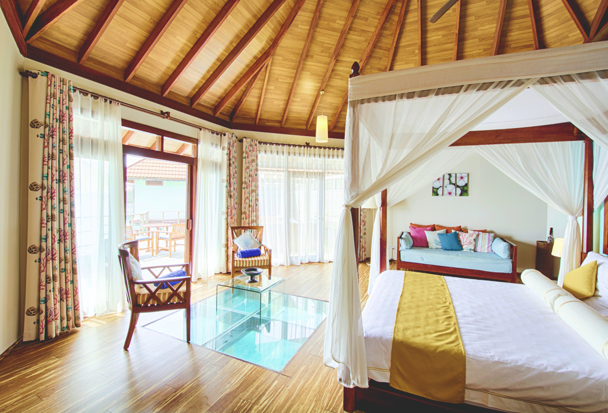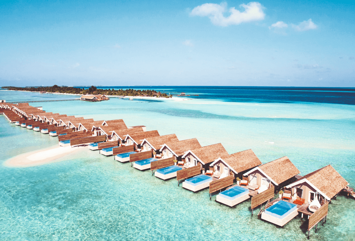 Accommodation is in the form of bungalows, either on the beach or suspended over the aqua-blue lagoon. Some of them come with their own private pools with unobstructed views out to sea. To get to the ROBINSON Maldives, you’ll take a scenic domestic flight followed by speedboat transfer.