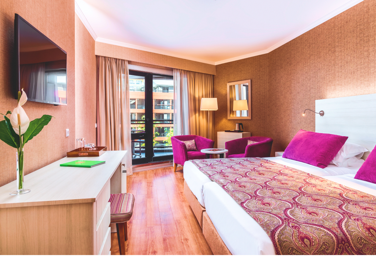 This is also a great spot to visit if you’re a golfing couple! Golfers get discounts on green fees for two nearby courses, meaning more spending money for holiday drinks and snacks of course. Back at the hotel there are plenty of sports and activities to keep you busy too. There’s a jam packed activity programme, where you can get involved in things like aqua aerobics, table football, billiards and much more! Of course, there’s also the fantastic main pool, which has a beautiful sea view terrace.