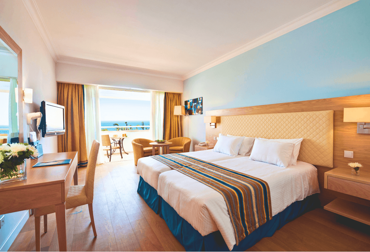 The rooms are beautiful at Olympic Lagoon Resort Paphos and will have you feeling like a mythical god or goddess when you wake up thanks to the super comfy beds and great facilities. All rooms feature free Wi-Fi access, a safe and satellite TV. Family rooms offer extra space, sleeping up to 5 people.