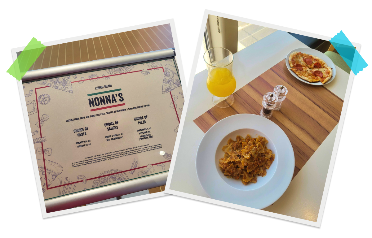 Once back onboard, we headed to Nonnas – the onboard Italian – where chefs whisk up your order right in front of you. I opted for the farfalle bolognese (topped with plenty of parmesan, of course) – it really hit the spot!