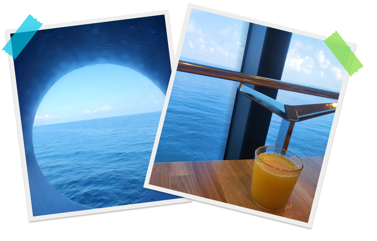 After waving goodbye to Almeria, we headed to the onboard theatre to catch a show. The ‘broadway theatre lounge’ is seriously impressive – it takes up the whole front end of the ship over two floors, and you’re handed cocktails as you walk in. Perfect!