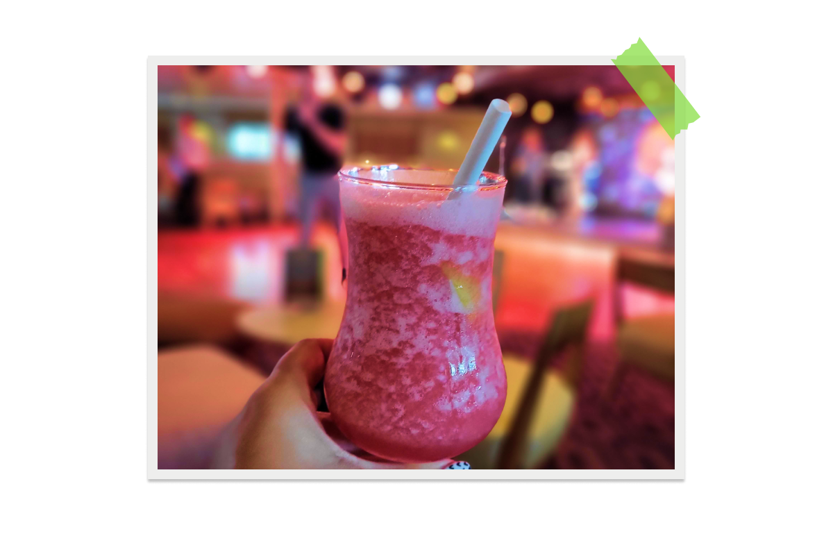 Add that to crimped hair and a splash of glitter and I was ready to go. As we made our way out onto the pool deck where the party would be held, we were impressed to see that everyone else had gone ‘all out’ too! From fellow 90s ravers to people dressed like the spice girls and even pac-man, it was clear everyone was ready to party!