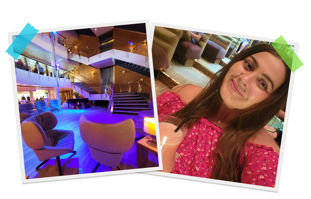 After quickly unpacking, it was time to get exploring the ship! We quickly made discoveries like The Coffee Port, the onboard cafe, as well as some of the onboard bars – the contemporary-looking Arts House, and Flutes (where a glass of something fizzy is a must!)