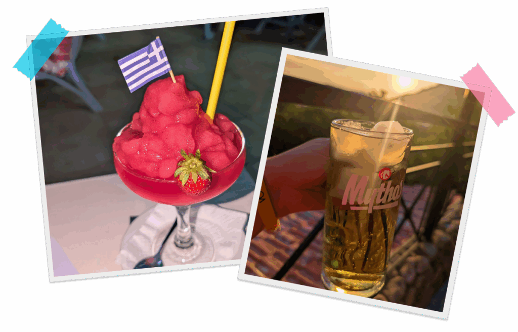 At both Pefkos and Lindos, you’re spoilt for choice for beautiful bars to enjoy a tipple (or two) in. Zig Zag Bar in Pefkos serves up THE BEST frozen cocktails, from ruby red strawberry daiquiris, to more creamy ones like a frozen Toblerone cocktail. It’s safe to say we tested out a good few from the drinks menu!