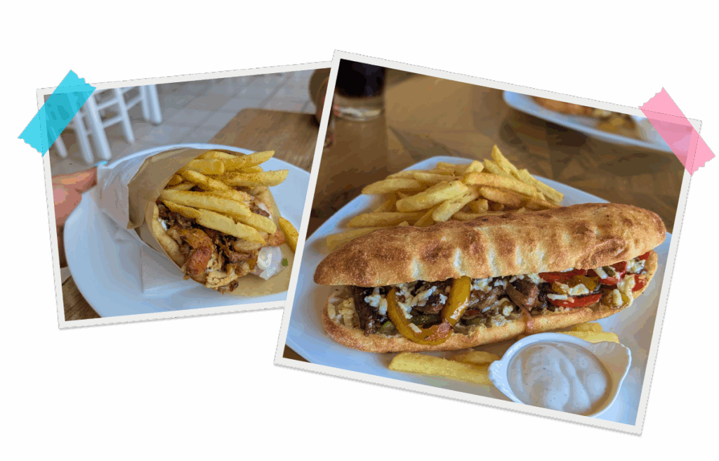 There are so many fantastic restaurants to choose from in Pefkos itself, where our favourite find was a little Greek restaurant that served up THE BEST gyros and cheesy steak and pepper sandwiches we had ever eaten! With loads of chips and tzatziki piled on top, we tucked into these nearly every day as either our lunch, or a naughty evening snack! (Calories don’t count on holiday, right?)