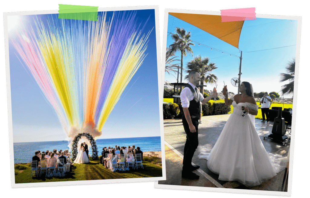 From coloured smoke flares going off for us at the altar to an aerial fireworks display and even a surprise visit from Britain’s Got Talent’s Stavros Flatley – our wedding was the day I had always dreamed of! And the next day, it was great to be able to chill around the pool and re-live the whole day with all our family and friends. If you’re thinking about an abroad wedding – just do it!
