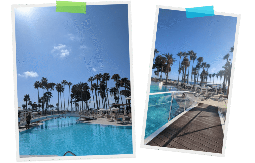 We stayed at the Leonardo Plaza Cypria Maris, a beautiful adults-only, All Inclusive hotel that’s just perfect for couples and groups looking for a mix of relaxation and fun. From the moment we arrived, the place had that “holiday bliss” feeling — modern, stylish, and spotlessly clean, with friendly staff who made us feel right at home.