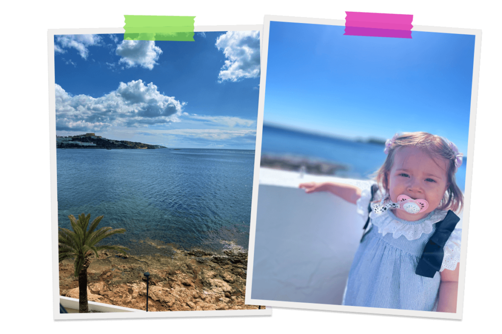 To keep our little girl entertained on the plane, we also packed a snack box with separate compartments for different snacks and treats. This was an absolute hit and even kept us happy when she fell asleep for the rest of the journey. When we arrived in Ibiza, we collected our pushchair and headed outside to grab a taxi to our accommodation. Outside of Ibiza Airport, there’s a long taxi rank, so you don’t have to wait too long to grab one. We found the prices quite reasonable and you’re able to pay by card too if you don’t have any cash to hand.