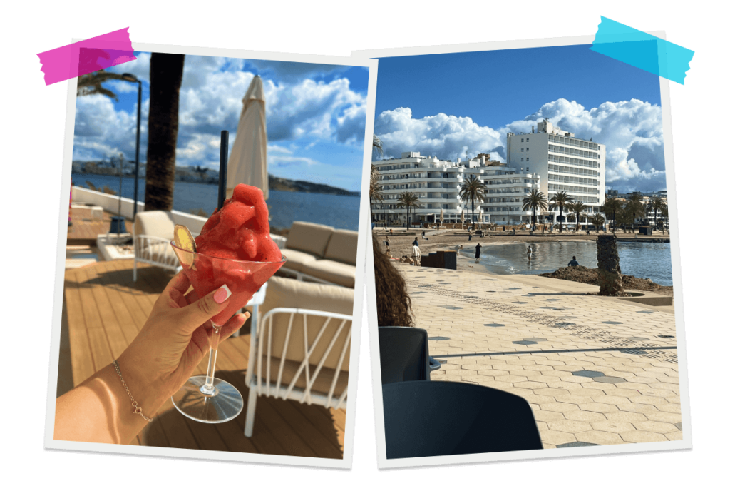 Playa D’en Bossa is home to some of Ibiza’s world renowned clubs, HÏ and Ushuaia. But apart from the legendary party scene, this town is actually a lovely place to visit during the daytime. There’s lots of shops and restaurants dotted along the main street and on the beach front. We stopped for lunch and dinner here on different days and both restaurants we visited were delicious. The tasty lunch spot we found was called Pago Pago and it had a gorgeous beachfront location with endless views out to the sea. The second place we stopped for a meal in Playa D’en Bossa was Tacosanto Taqueria. We were all craving some delicious, fresh Mexican style food and we definitely got what we desired! The menu included everything you could possibly crave from nachos to burritos, tacos to quesadillas.