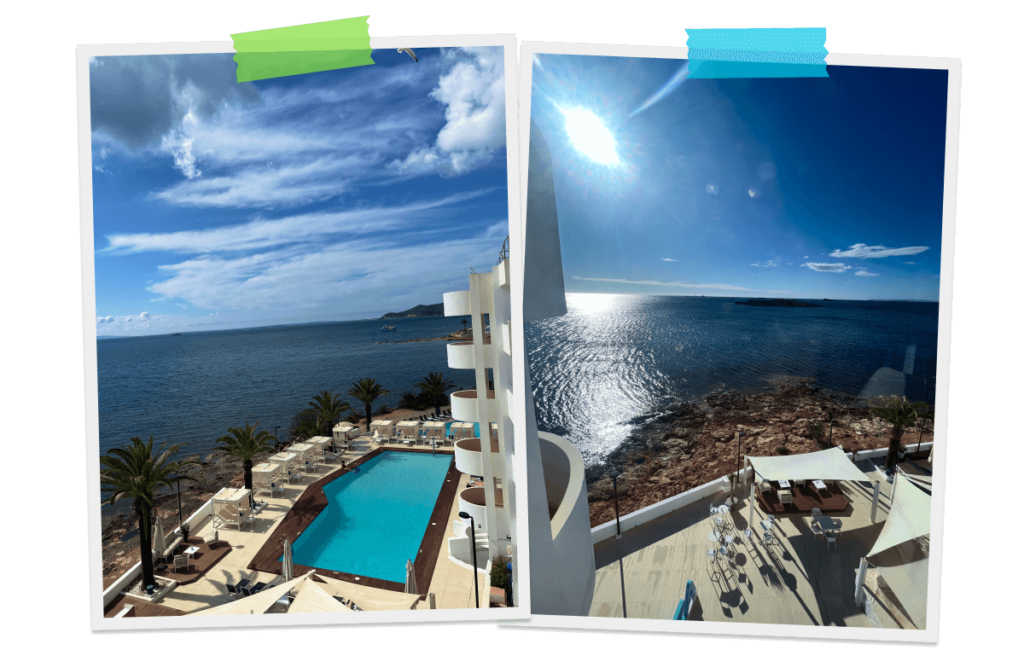We booked a two-bedroom apartment which was part of the Vibra brand, and it was the perfect size for four adults and a baby. There are lots of apartments, hotels and aparthotels owned by the Vibra brand dotted around Ibiza and we were really impressed with the facilities of ours, so definitely recommend checking them out as the price is fantastic!