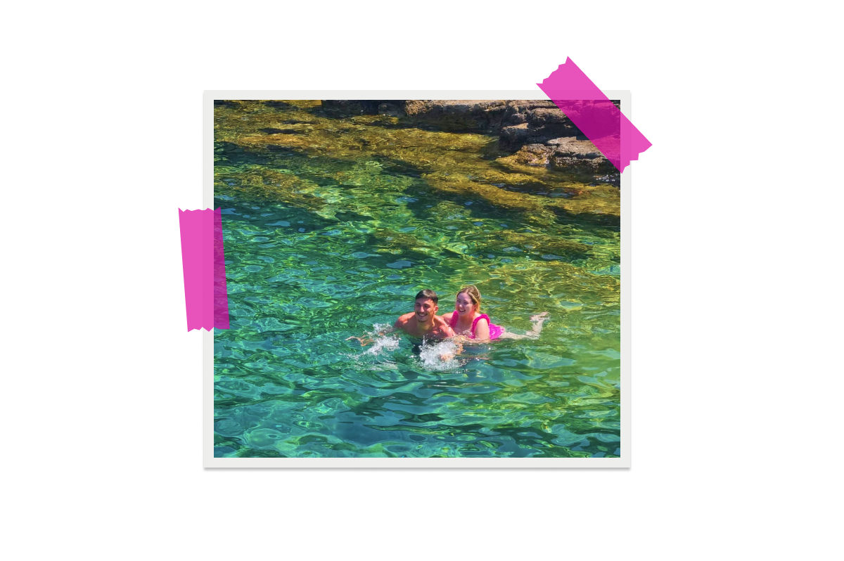 Next stop was Paralia Vlichadia, a small town further down the coast of Kalymnos island. When the boat pulled up here, we all got the chance to head down to the pebbly beach and take a dip in the crystal clear water. It was a bit chilly at first but once you got used to it, it was so relaxing and just what we needed to cool down in the heat!
