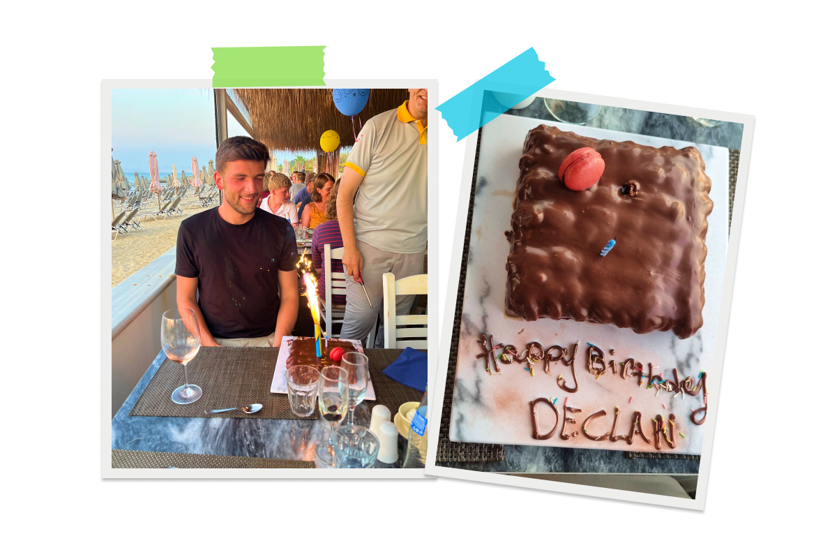 After our amazing meal, our very friendly waiter brought over a handmade cake with ‘Happy Birthday Declan’ written on the board and a bright sparkler bursting from the top. This was a perfect start to our holiday and was an evening we’ll never forget.