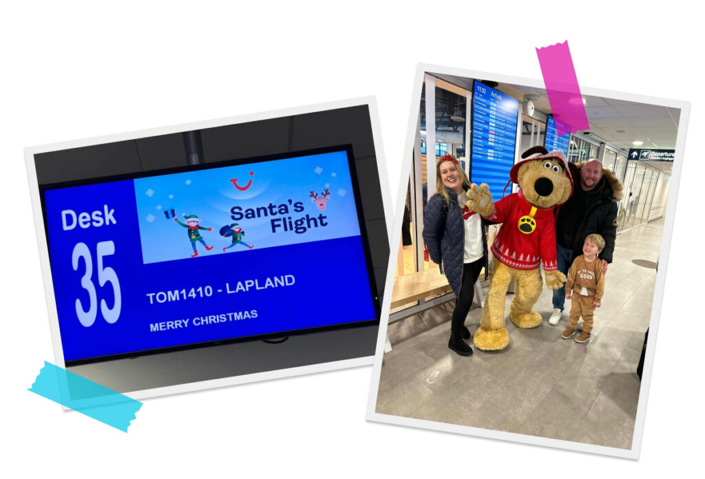 Two days later and it was time for our adventure to begin! We were up at 3am and on our way to Newcastle airport for our 3-night getaway to Lapland – it really didn’t feel real. We arrived to the happiest and warmest welcome from TUI staff on arrival, had a photo selfie, and looked up to see the flight screens showing TOM1410 to LAPLAND! There were even pictures of the main man himself…Santa!