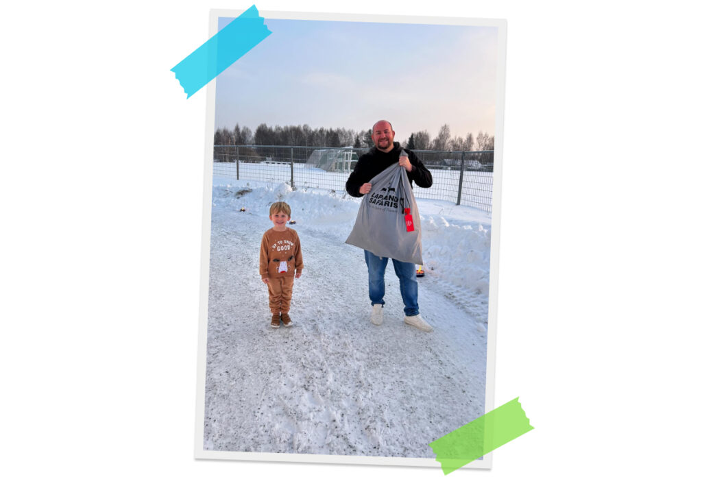The flight to Lapland wasn’t your average flight – it was decorated Christmassy of course, with cabin crew in Christmas jumpers and hats. Hugo and all the kids onboard received a wonderful welcome pack full of colouring pages & puzzles, and they even had a colouring competition for best picture with the winners receiving selection boxes! During the flight we sang a few Christmas songs, played a couple of games, and children were welcomed down to the front of the plane to tell their best jokes and what they were asking Santa for Christmas. It all really raised the excitement – oh, and we had a nice breakfast included too!