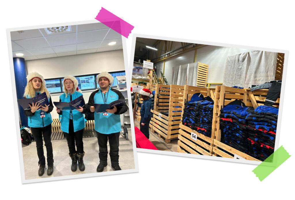 We had an elf on our bus called Candy Cane who told us all about Lapland and did a great job of getting everyone excited, before Tinsel Teigan the TUI rep explained all the exciting things they had planned for us. Never mind Hugo being excited – Coral and I felt like big kids ourselves! We were then taken to the Christmas factory, where we picked up big sacks ready for our snowsuits, snow boots, mittens, socks, hat and scarf – all included with TUI – and then off to our hotel we went.