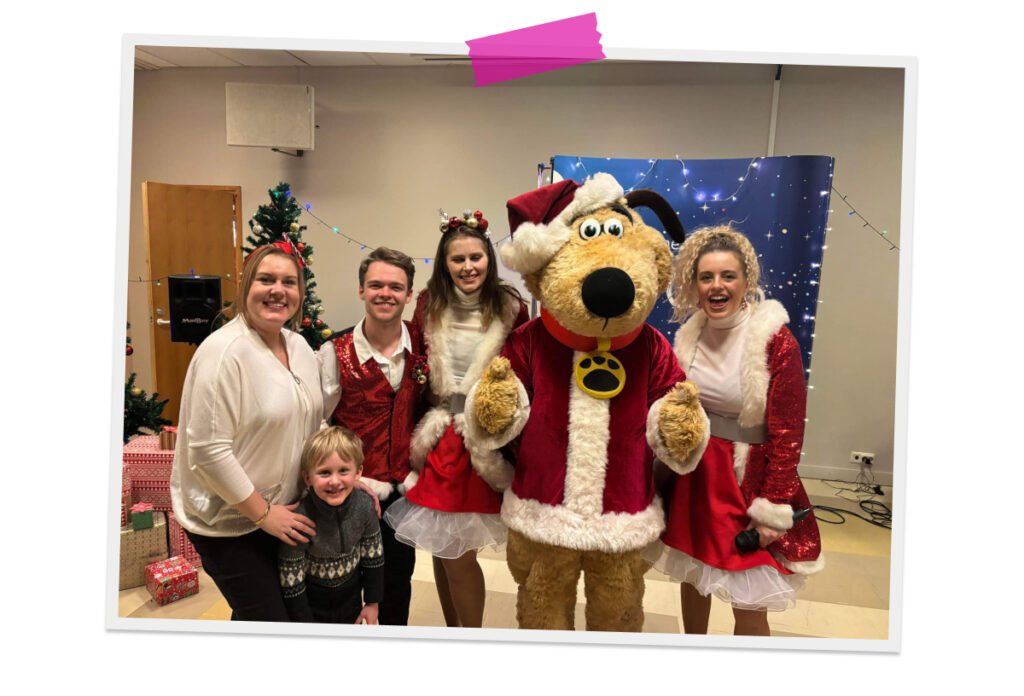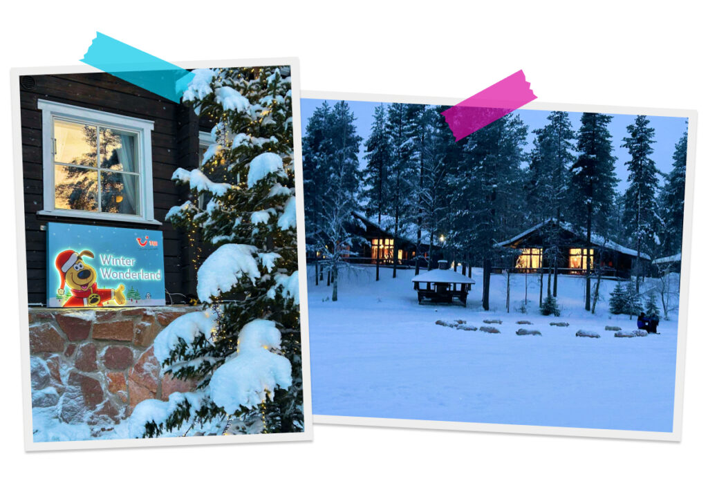 We touched down at Rovaniemi airport to an even bigger, even smilier greeting from carol-singing TUI reps, alongside a team of elves waving at us. Christmas music was blasting out and we even got a photo with the main dog himself – Captain T. Hugo’s little face lit up, but this was only the start of the adventure!