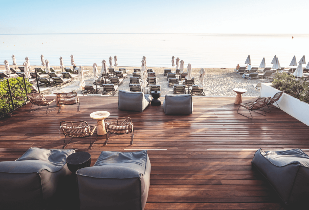 - Stunning and intimate pool scene dotted with palm trees, bali beds and ocean views