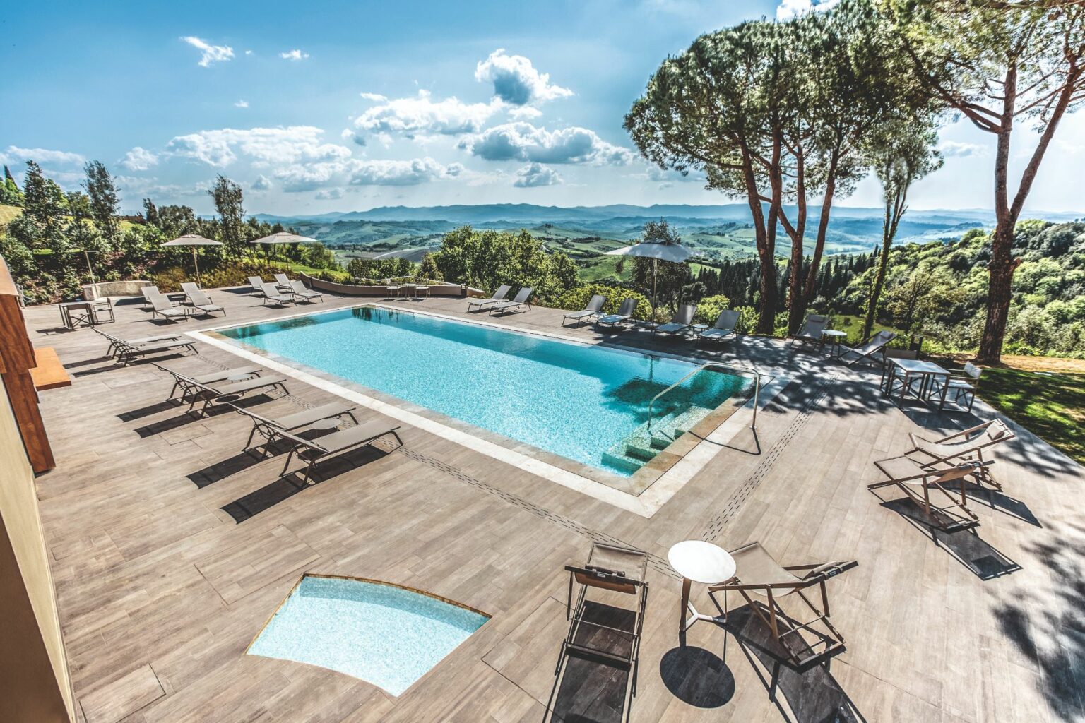 Do we really need to even say anything when you’ve got scenes like in the image above? This hotel sits at the top of a sloping green hillside in the heart of historic Tuscany in Italy. Talk about perfection! The decor of this hotel has been designed to fit in with it’s Medieval village surroundings, so there’s a real traditional feel here – whilst still remaining sleek and stylish.