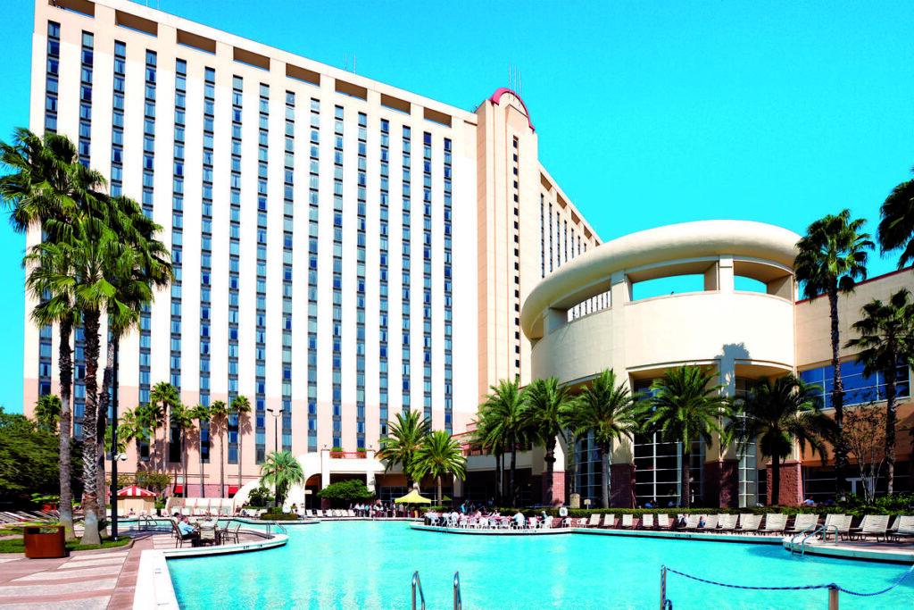 Practically located in the heart of I-Drive, the Rosen Centre Hotel is only a 15 minute drive to Walt Disney World and less than 10 to Universal! The complex itself includes lots of restaurants, a large pool and a spa. Holidays to Orlando can be a bit full on so for those days where you just need a bit of down time, the Rosen Centre Hotel’s pool area that’s lined with palm trees and comfy loungers can be a great place to retreat. There’s an onsite bar providing Cuban and Caribbean themed snacks and drinks throughout the day too!