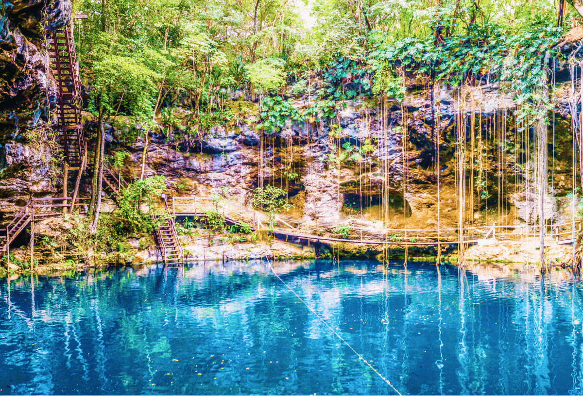 Mexico’s Yucatan Peninsula is well known for its amazing cenotes – natural swimming holes formed by the collapse of limestone rock, creating an inner cave of beauty. The entire of Riviera Maya is covered with thousands of these groundwater pools, with many open to swimming in!