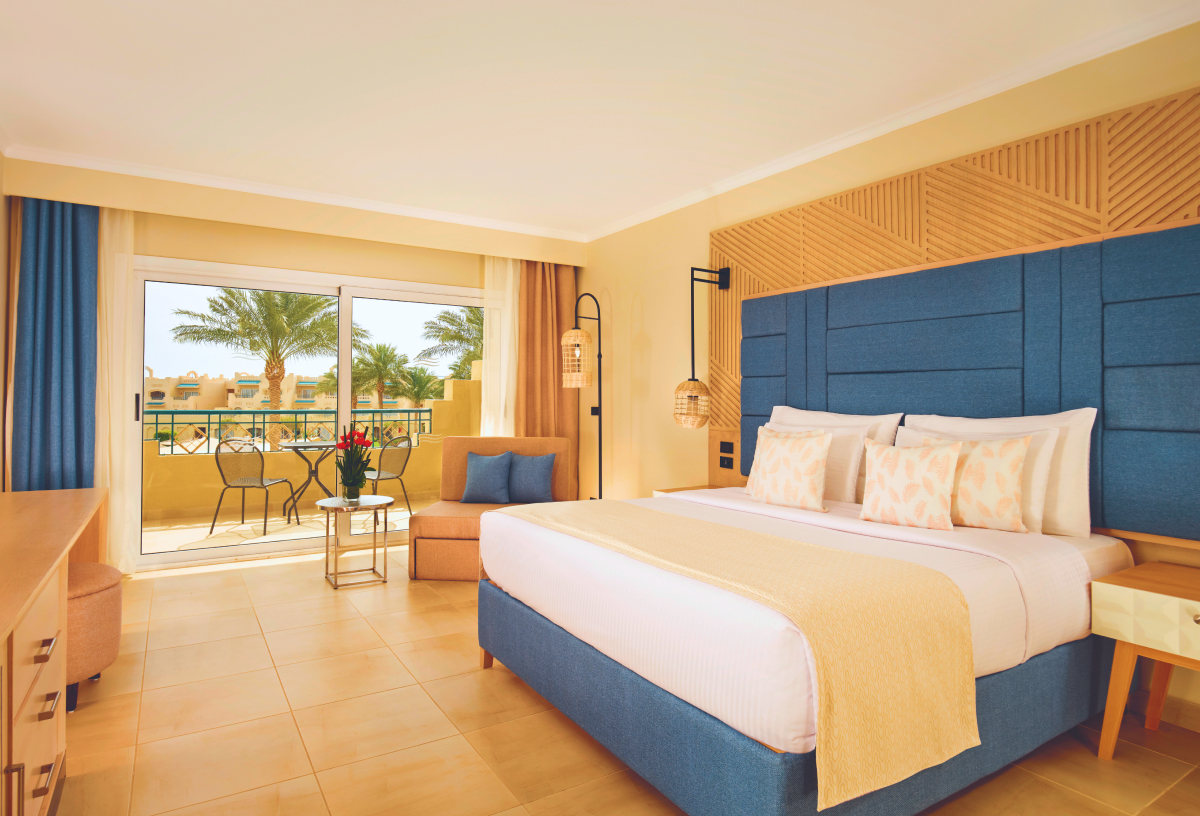 When arriving at a hotel, one of the most exciting things is getting to check out your room for the first time. The rooms here at Jaz Makadi Aquaviva really do have that ‘wow’ factor which makes your jaw drop as the door opens. There’s a warm and inviting feel to the rooms here. They all come with air-conditioning, satellite TV, and a balcony or terrace for that bit of outside space. You can choose a twin or upgrade to a swim-up superior twin room which gets you direct access to a pool. Family rooms are also available which have extra sofa-beds in the lounge area.