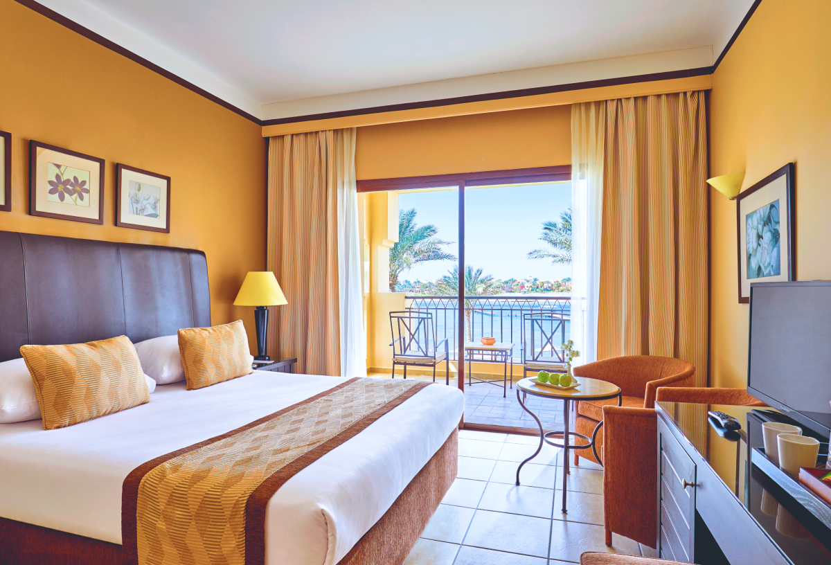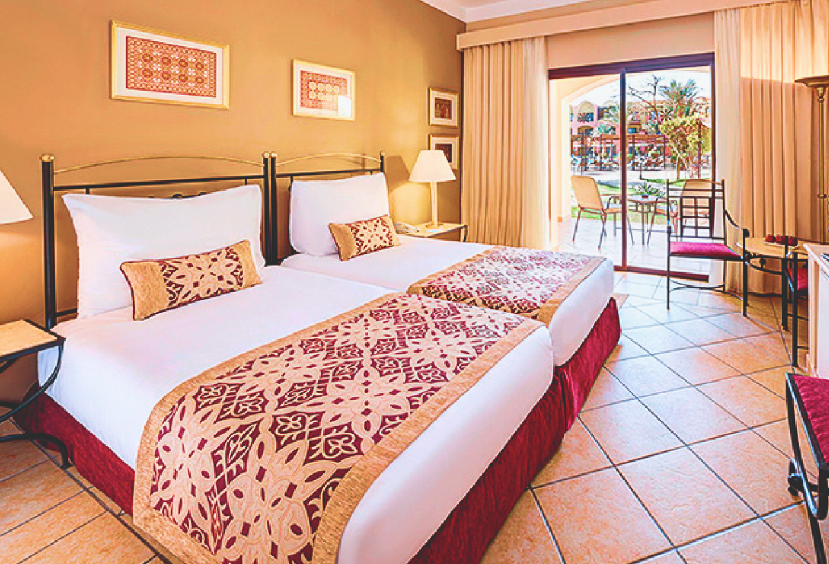 Golf fans will be pleased to know there’s a championship 18 hole golf course nearby, which comes with lakes, waterfalls and views of the Red Sea. The golf course also has a driving range and a pro shop. The rest of the sports line-up includes volleyball, squash and tennis courts. Down at the beach, you can hire snorkelling gear or sign up for a dive with the scuba school. Entertainment wise, shows and folklore nights laid on in the evenings. And there’s a bar in the lobby for late-night cocktails, after midnight drinks are at an extra cost.