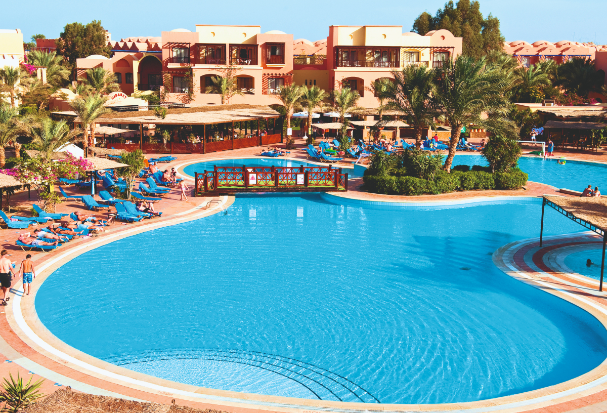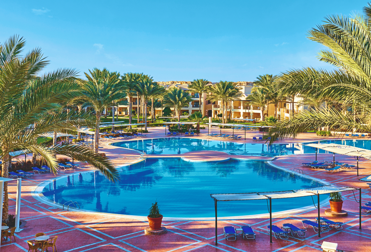 The Jaz Lamaya Resort is one of Egypt’s best-kept secrets. This stylish hotel puts you on the edge of a sandy beach and a beautiful coral reef. And it’s got three big outdoor pools too, which look out to the bay. Two of them are heated in winter, and there’s a children’s pool, too. Thatched shelters create some welcome shade, and there’s a bar for drinks and ice-creams. Free entry to the Aqua Coraya waterpark in Madinat Coraya is included in your package. You’ll find flying boat slides, a space boat and an aqua tube. Overall, expect a whopping 31 waterslides in total, 19 for adults and 12 for children, with splash pools for youngsters, too.