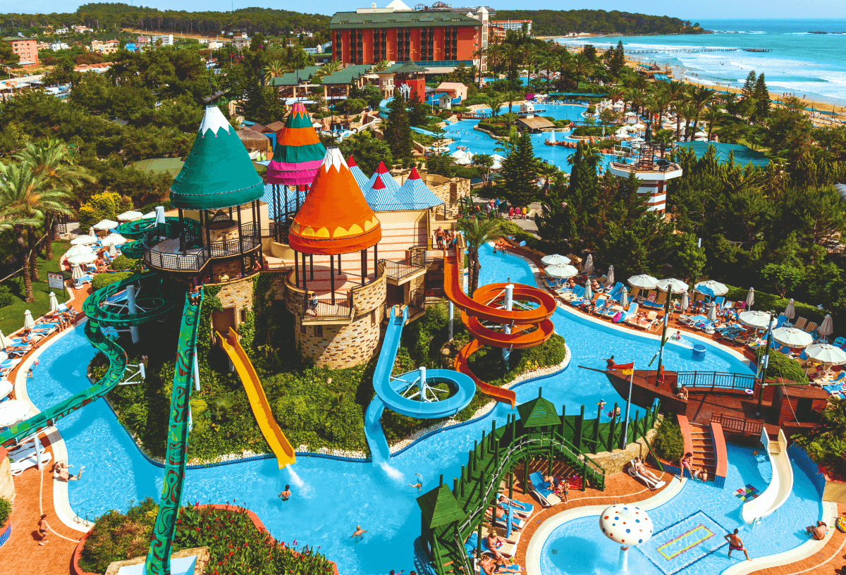 One of the biggest attractions of Pegasos Royal is the incredible pool area. It is one of the many resorts in Turkey that cater for families in every way. With its lake-sized pool, 16 water slides and multiple wooden bridges, it’s an adventure in itself. Down at the beach, the shallow water is great for paddling with little ones.