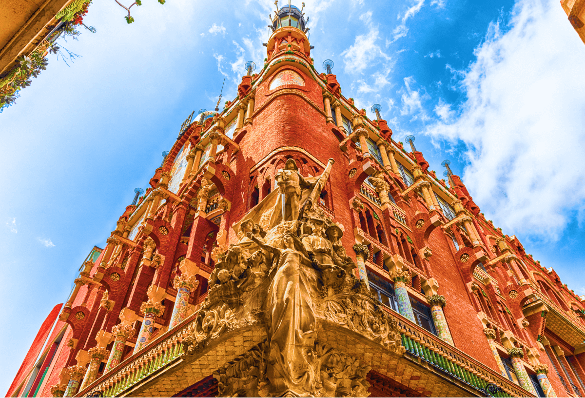 The Palace of Catalan Music is a concert hall in Barcelona which was designed in the Catalan modernista style by the architect Lluís Domènech i Montaner. It was originally built between 1905 and 1908, and was later restored between 1982 and 1989. The website states it is ‘an architectural jewel of Catalan Art Nouveau, the only concert venue in this style to be listed as a World Heritage Site by UNESCO’.