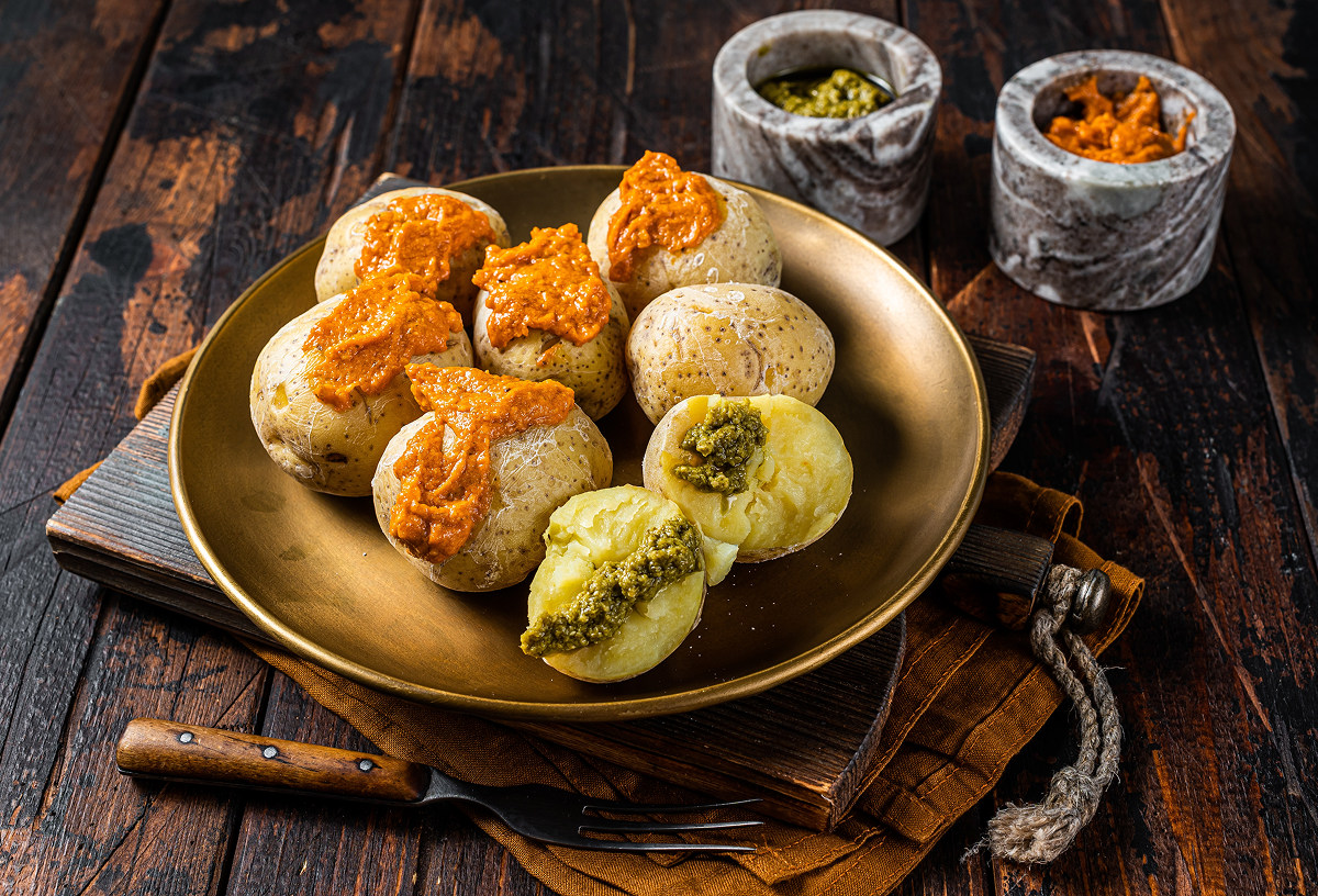 • Served with mojo verde or mojo picón (traditional green and red sauces)