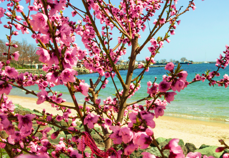 In Bulgarian folklore the 1st March is the beginning of spring. The turning of the season is personified by a grumpy elderly lady called Baba Marta, meaning Grandmother March, who is strongly associated with the colours red and white. Each year to celebrate, Bulgarians give each other red and white dolls made of tassels, called Martenitsa. Traditionally, Martenitsa dolls are placed under rocks or tied to trees, giving Bulgaria the appearance of an early spring flowered with an abundance of fluffy red and white blooms.