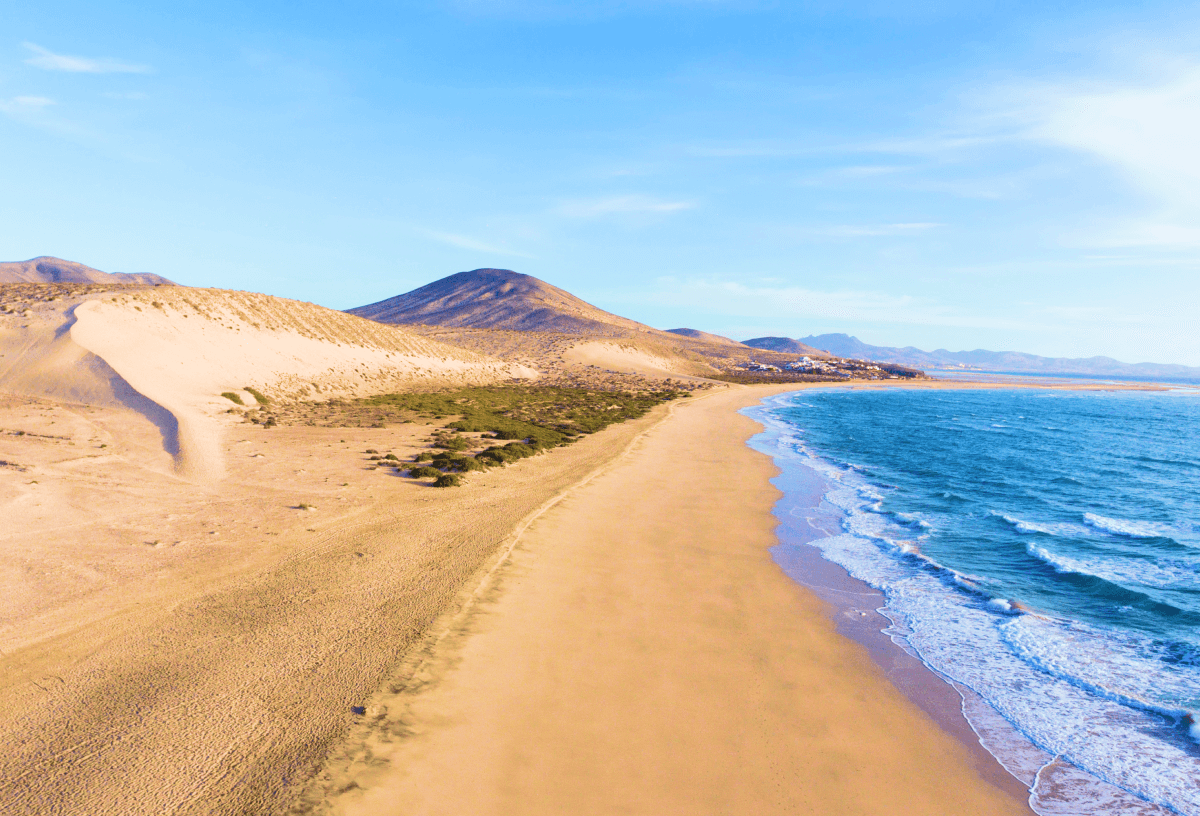 On the west coast of Fuerteventura you’ll find a quaint little fishing village, El Cotillo, which is home to some beautiful beaches. These lagoon beaches are excellent for spotting marine life and great for children thanks to the safe clear waters. Make fond memories with your family paddling in the shallow waters and hunting for colourful fish. Set back from the golden sands