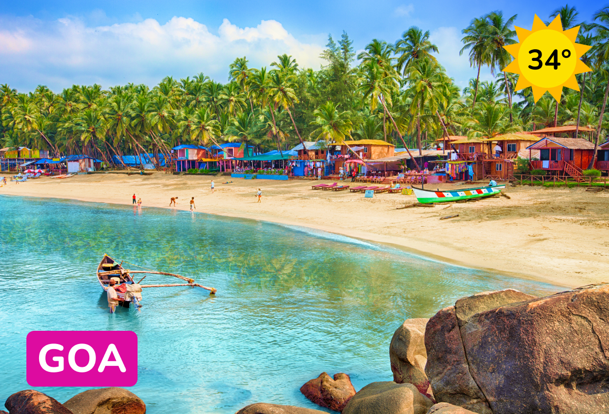 Temperatures can reach up to 34C in Goa in November, so if you’re up for a toasty getaway, this is a great choice. One of the main attractions in Goa is of course the golden sand beaches where you’ll find everything from relaxing sunbathing hot spots to some seriously late-night parties.
